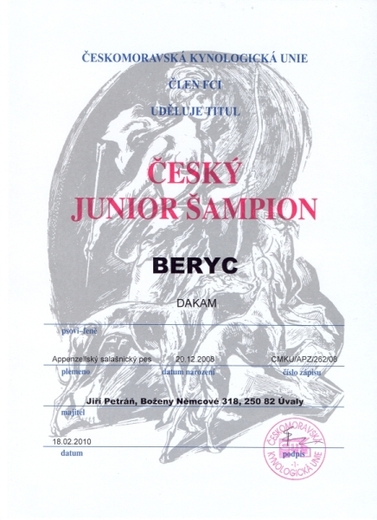 18.2.2010 nám byl přiznán titul ČESKÝ JUNIOR ŠAMPION