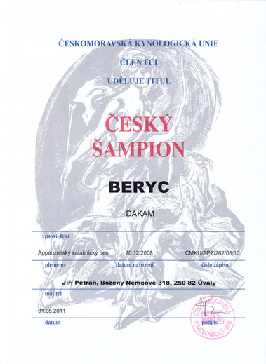 31.5.2011 nám byl přiznán titul ČESKÝ ŠAMPION